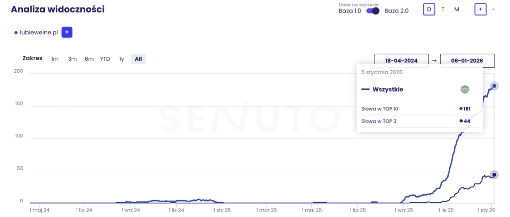 Zaczęłyśmy od zerowej widoczności w czerwcu, obecnie, mamy 180 słów w TOP 10 i ponad 40 w TOP 3. Mało, dużo?
